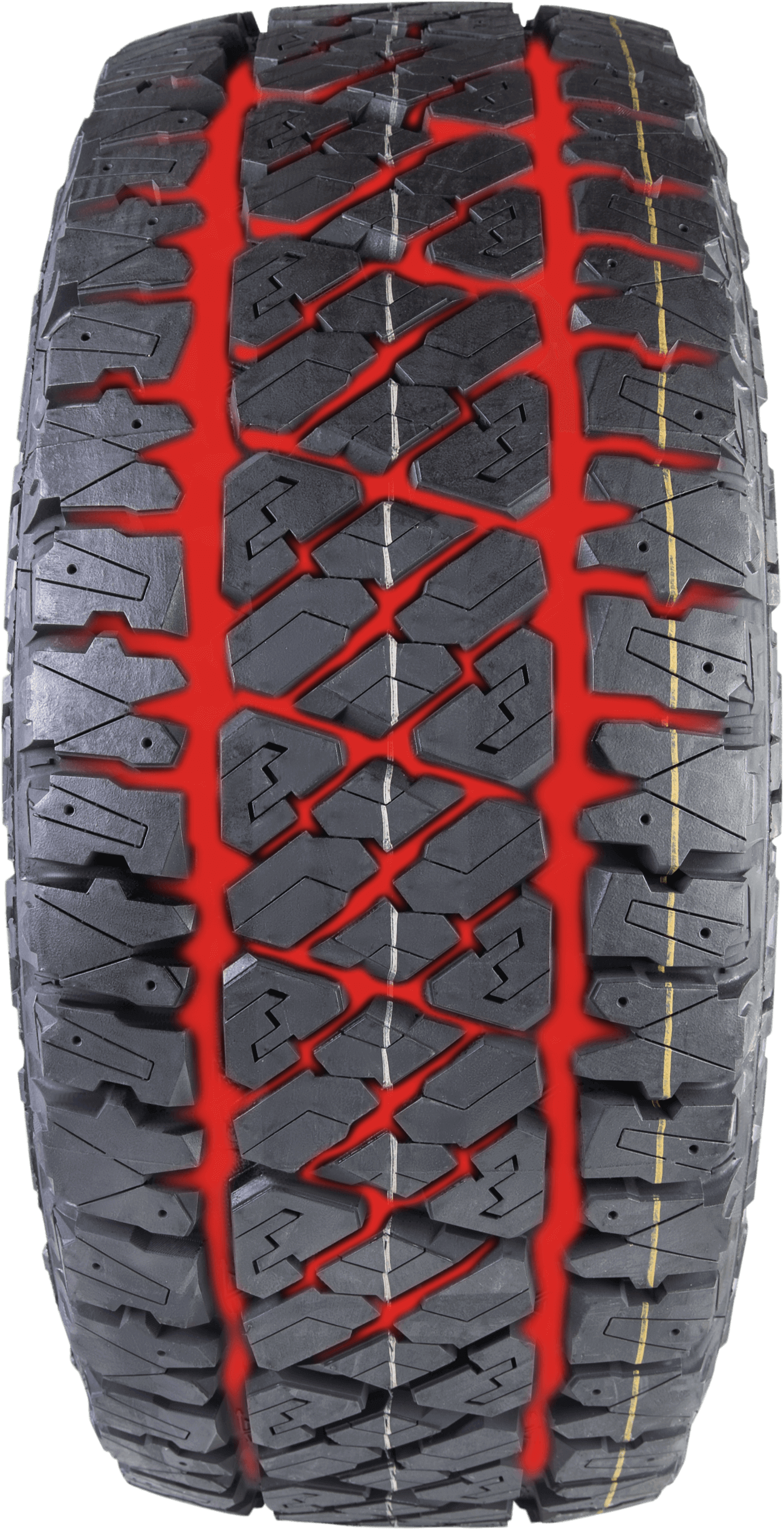 Providing a powerful grip in the rain while keeping the tread blocks stable, so you get confident wet traction without sacrificing off-road toughness.