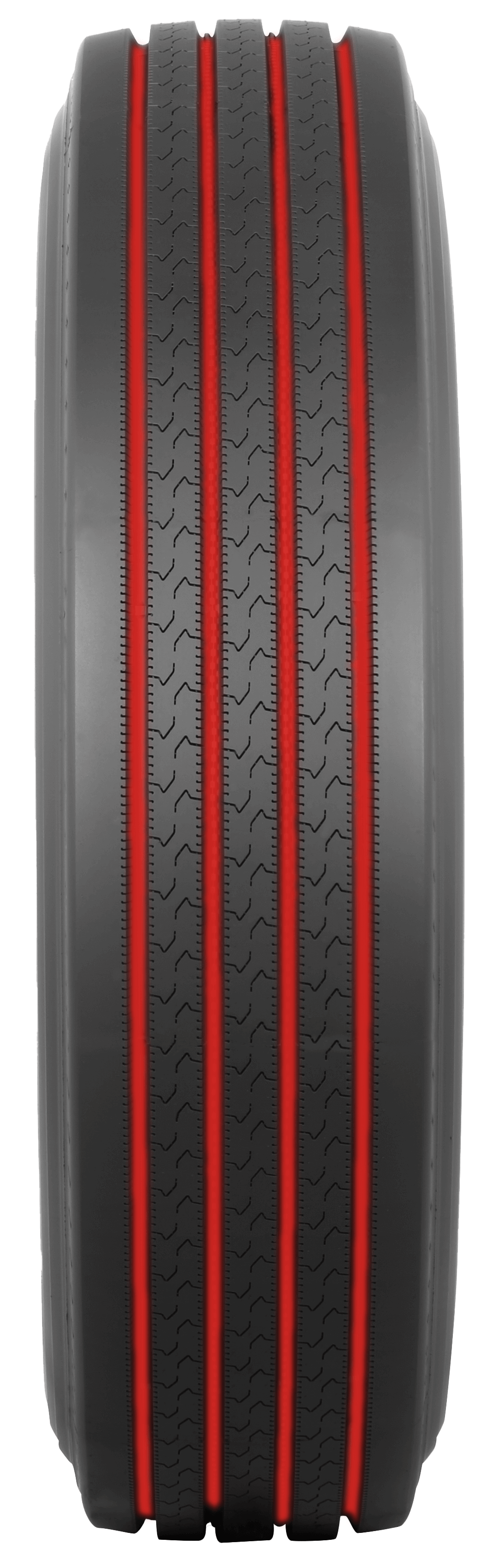 Generous siping to minimize and combat free-rolling irregular wear.